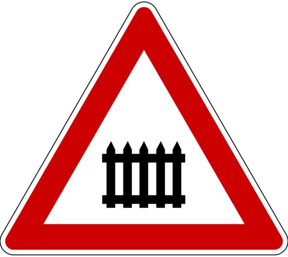 Keywords: traffic sign road sign shield traffic road street sign drive auto warning attention note level crossing barrier train track