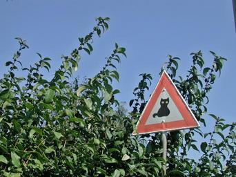 Keywords: traffic sign shield humor funny cat animal pet black cat caution street sign road sign ban germany strange