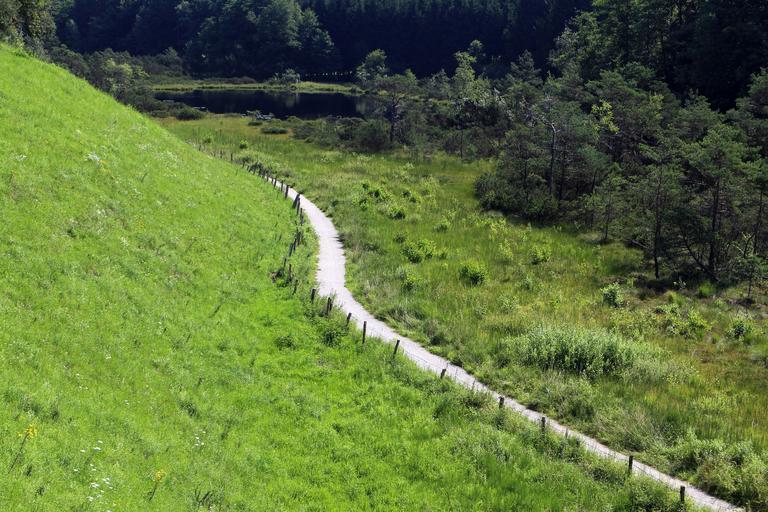 Keywords: trail away nature meadow trees lane dirt track commercial way walk hiking pasture green
