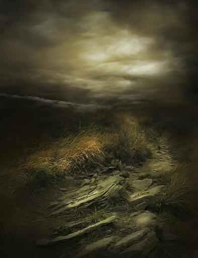 Keywords: trail rocks coast line hills weather mood late evening landscape sky nature scenery magic light outside clouds