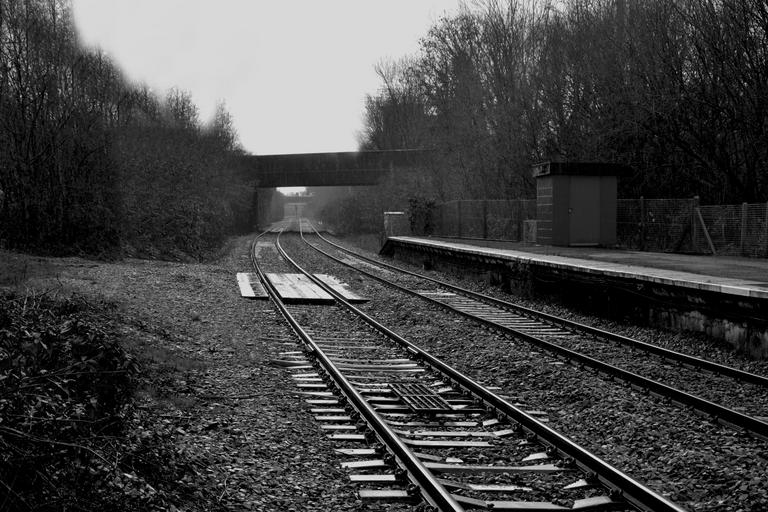 Keywords: train railways transport rail transportation track railroad travel station train tracks industry journey railroad tracks platform industrial departure train station arrival black and white trees winter line passenger speed