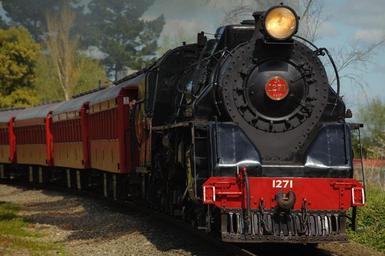 Keywords: train steam engine locomotive railway railroad transportation tracks rail black approaching metal iron steel historic classic red carriage nostalgia vintage