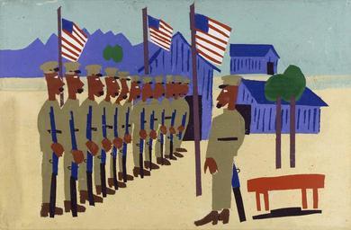 Keywords: smithsonian institution smithsonianinstitution print american flags americanflags soldiers artwork william h. johnson williamhjohnson art smithsonian american art museum smithsonianamericanartmuseum Artist: William H. Johnson, born Florence, SC 1901-died Central Islip, NY 1970 Type: Graphic Arts-Print Date: ca. 1941-1942 Topic: Figure group\male      Ethnic\African-American      Figure(s) in exterior\military      Occupation\military\soldier      Object\other\flag      Object\weapon\gun Object number: 1967.59.1036 Medium: serigraph on paper Credit Line: Smithsonian American Art Museum, Gift of the Harmon Foundation Persistent URL:http://americanart.si.edu/collections/search/artwork/?id=12120 Repository:Smithsonian American Art Museum View more collections from the Smithsonian Institution. Artist: William H. Johnson, born Florence, SC 1901-died Central Islip, NY 1970 Type: Graphic Arts-Print Date: ca. 1941-1942 Topic: Figure group\male Ethnic\African-American Figure(s) in exterior\military Occupation\military\soldier Object\other\flag Object\weapon\gun Object number: 1967.59.1036 Medium: serigraph on paper Credit Line: Smithsonian American Art Museum, Gift of the Harmon Foundation Persistent URL:http://americanart.si.edu/collections/search/artwork/?id=12120 Repository:Smithsonian American Art Museum View more collections from the Smithsonian Institution. |