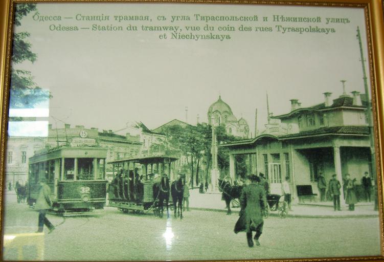 | Keywords: TramOdessaTiraspolskayaNejinskaya.jpg ru Т амвайная остановка на углу Ти аспольской и ежинской улиц en Tram station near Tiraspolskaya and Nejinskaya crossing old photo 19th century author PD-old Trams in Odessa Historical trams in Ukraine Postcards of Odessa Tram stops in Odessa Tyraspolska Street Nizhynska Street Odessa Tyraspolska Ploshcha |