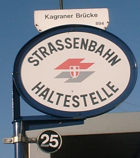 | Keywords: Tramway station sign in vienna kagraner bruecke.jpg Tramway station sign in Vienna Austria station Kagraner Brücke Note The line 25 is no longer existent since 27 July 2006 the line 26 now substitutes it Tram stop signs in Austria Tram stops in Vienna Wagramer Straße Vienna |