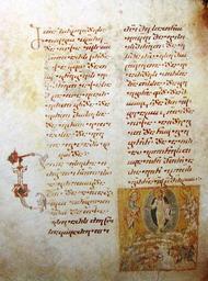 | Keywords: Transfiguration. Mokvi Gospels Q-902, 59v, 1300.jpg en The Transfiguration a miniature from the Mokvi Gospels MSS Q-902 59v National Center of Manuscripts Tbilisi Georgia Machavariani H Aleksidze Z The Decoration of Georgian Manuscripts Tbilisi 1990 anonymous 1300 PD-old-100 Mokvi Gospel Miniatures of the Transfiguration of Jesus Christ Asomtavruli letter Ani | ||||