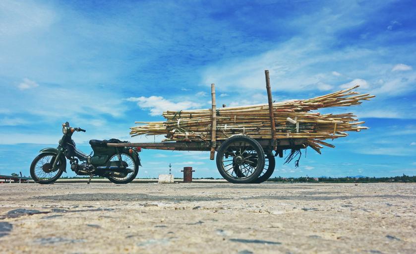 Keywords: transport motorcycle trailer bamboo loaded full bike vehicle motorbike moped
