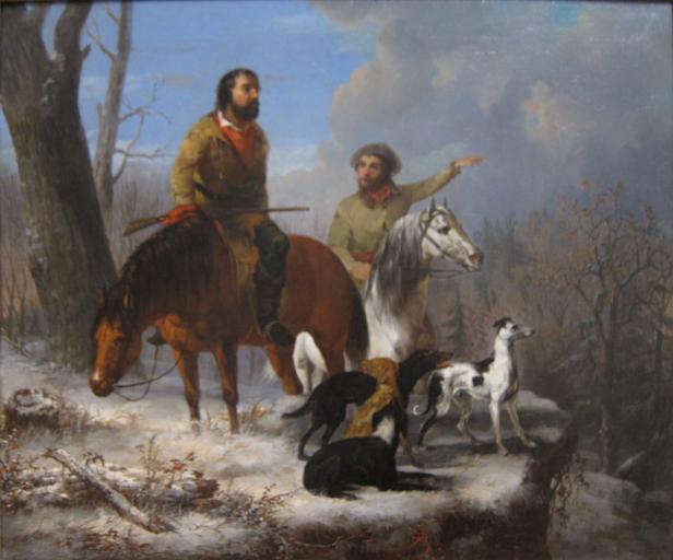 | Keywords: Trappers by Jonathan Kirkbridge Trego and J. L. Williams, c. 1857.JPG Trappers by Jonathan Kirkbridge Trego and J L Williams c 1857 oil on canvas Metropolitan Museum of Art accession 1985 354 own 1857 Jonathan Kirkbridge Trego and J L Williams PD-old-100 American paintings in the Metropolitan Museum of Art Trego Jonathan Kirkbridge Trego | ||||