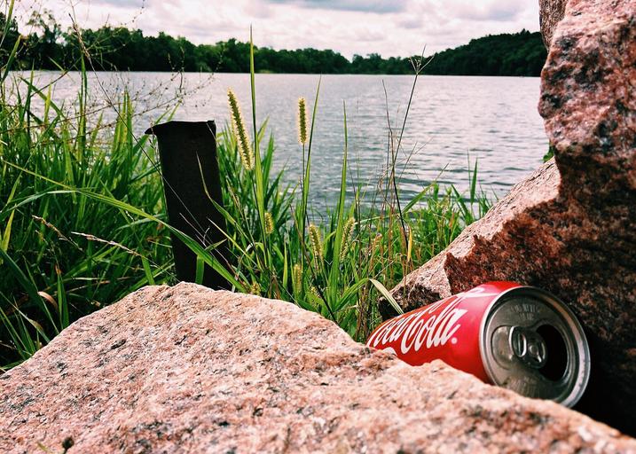 Keywords: trash litter pop can river refuse garbage waste
