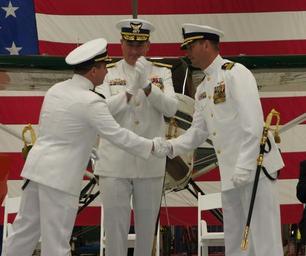 Keywords: Traverse City change of command DVIDS1102663.jpg en TRAVERSE CITY Mich - Coast Guard Cmdr Jonathan Spaner left and Cmdr Joseph Buzzella right shake hands as Ninth District Commander Rear Adm Michael Parks center applauds during a ceremony at Coast Guard Air Station Traverse City May 13 2011 at which Spaner transferred command of the air station to Buzzella Spaner was the air station's commanding officer for the previous two years and is departing to attend the Massachusetts Institute of Technology Sloan School of Management in Cambridge Mass Photo courtesy of Jan Edman 2011-05-13 https //www dvidshub net/image/1102663 1102663 2013-12-12 09 27 TRAVERSE CITY MI US PD-USGov CGAS Traverse City Images from DoD uploaded by Fæ |