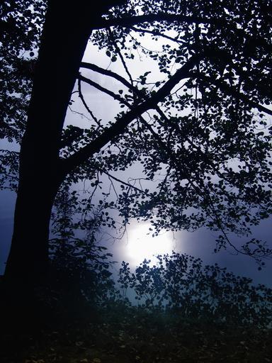Keywords: tree back light black forest lake titisee germany atmosphere