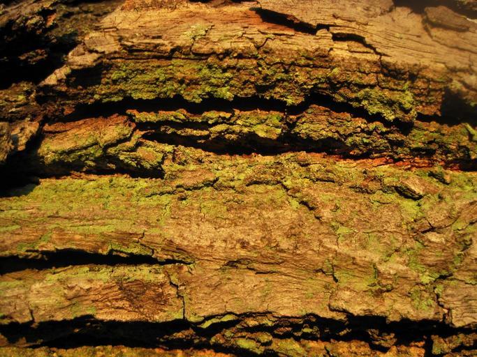 Keywords: tree bark rough textured cracked moss green