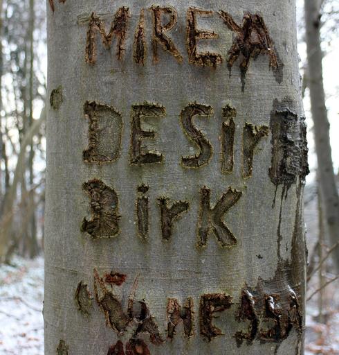Keywords: tree carved name symbol engraved eingeritzter tree tree bark close letter letters memory promise emotion