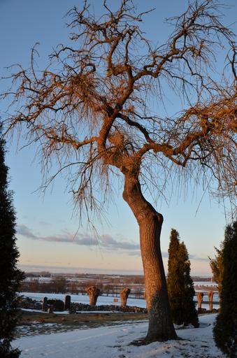 Keywords: tree cemetery evening sun winter park rest peaceful sky atmosphere snow cold blue nature