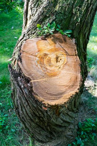 Keywords: tree cut moss trunk log green concentric slice cutting ring