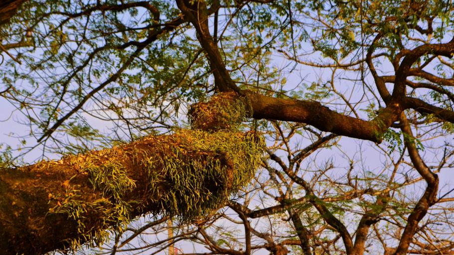 Keywords: tree evening under green season spring sky brown nature shade shadow light orange blue branch top magenta leaf fern tropical