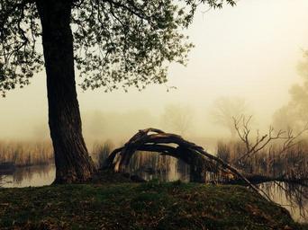Keywords: tree fog mood landscape atmosphere nature lake grasses water