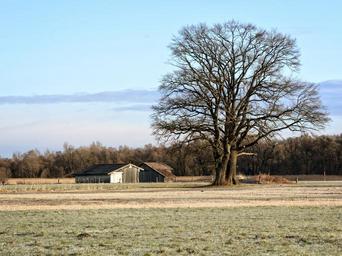 Keywords: tree individually silhouette nature field meadow barn vacation field barn scheuer rustic romance romantic old agriculture historically bavaria chiemgau landscape distant