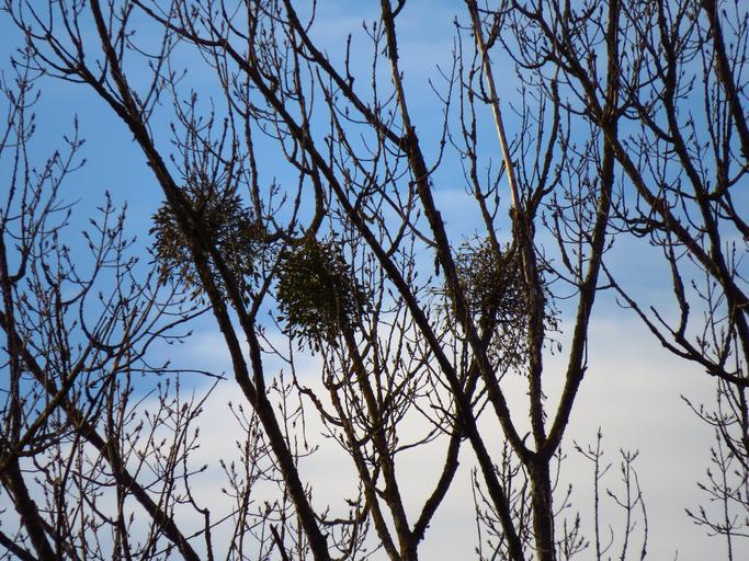 Keywords: tree poplar white poplar silhouette black mistletoe viscum sandalwood crop sky blue clear sunny hell warm beautiful clouds federwolke cirrus branches aesthetic crown parasite