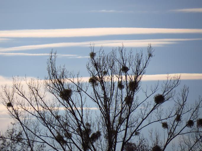 Keywords: tree poplar white poplar silhouette black mistletoe viscum sandalwood crop sky blue clear sunny hell warm beautiful clouds federwolke cirrus branches aesthetic crown parasite
