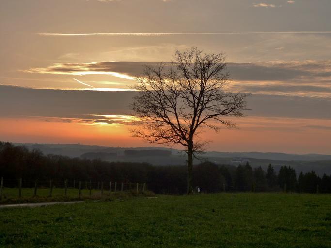Keywords: tree setting sun sunset evening sky silhouette colorful air landscape luxembourg