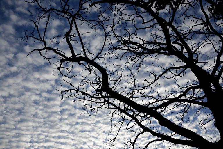 Keywords: tree sky clouds twigs nature blue old tree landscape blue sky against light flying silhouette autumn