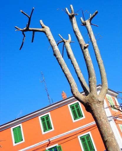 Keywords: tree spring sky branches trunk house color colorful