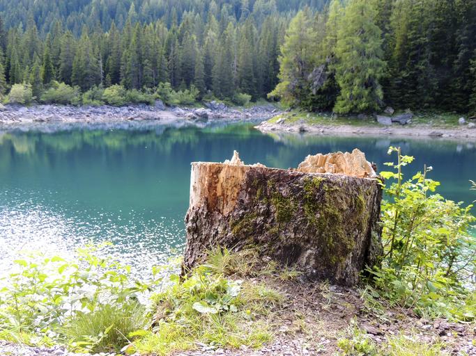 Keywords: tree stump log sawed off lake mountain mountains bergsee wood bark nature tree