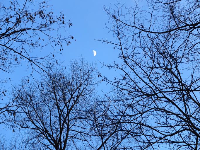 Keywords: trees aesthetic branches canopy forest silhouettes moon blue sky evening twilight