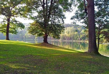MAKE A MEME View Large Image trees autumn landscape lake sun september nature water green
