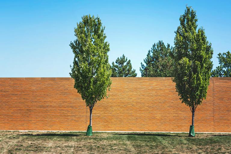 Keywords: trees brick wall wall garden park tree organic agriculture outdoors environment trunk leaves branches nature