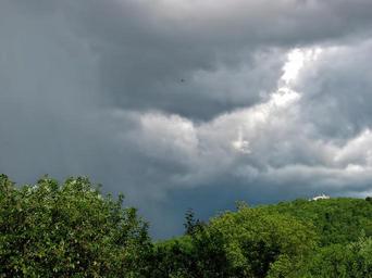 Keywords: trees cloudy sky day dark clouds greenery branches leaves leafy plants flora horizon nature storms stormy weather cloudscape scenic scenery forest