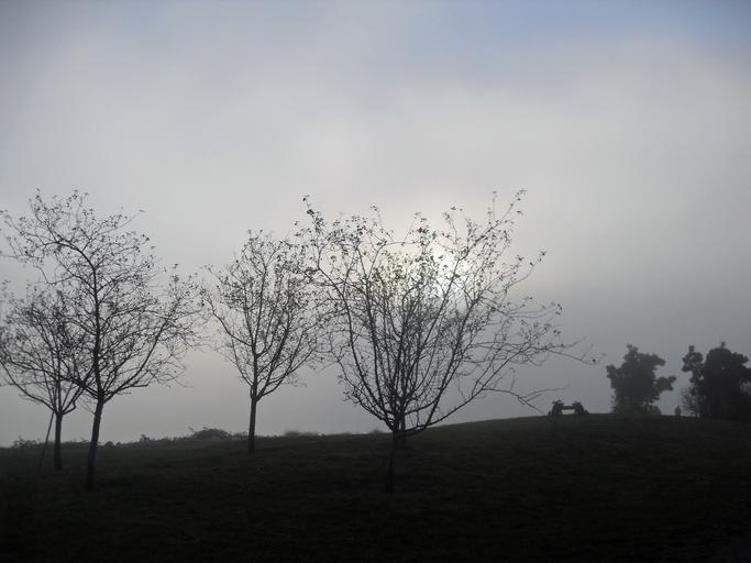 Keywords: trees fog park landscape mist tree organic agriculture outdoors environment trunk leaves branches nature