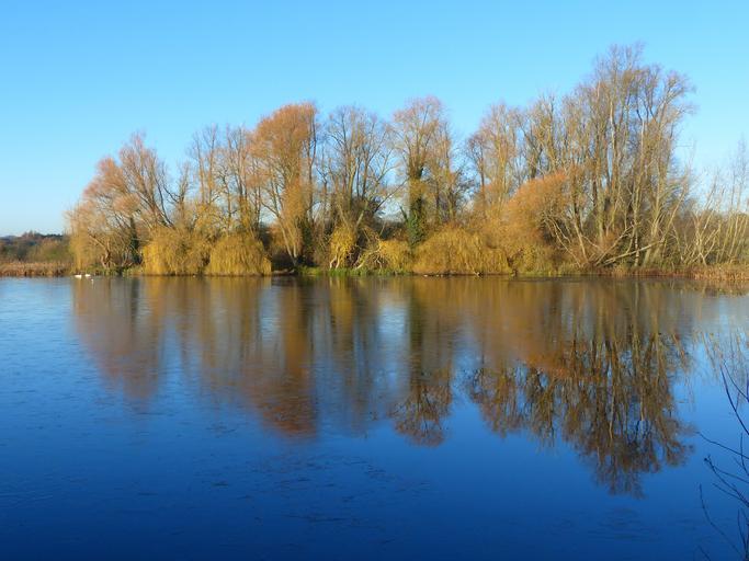 Keywords: trees lake reflection water sky blue