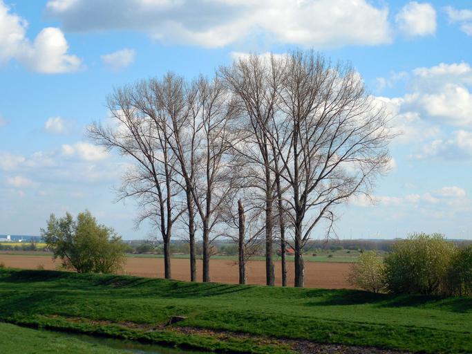 Keywords: trees spring nature landscape meadow clouds tree