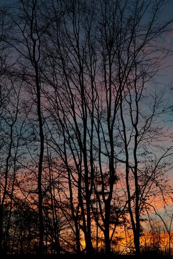 Keywords: trees tree trunks sunset afterglow evening sky clouds sky abendstimmung reddish