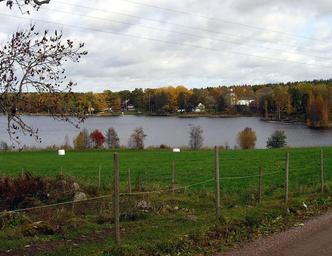 Keywords: Trehornasjon.jpg sv Trehörnasjön med Trehörna kyrka own own photo Anders Johansson 2008-10-12 Trehörna kyrka Lakes of Sweden 2008 in Ödeshög Municipality October 2008 in Sweden