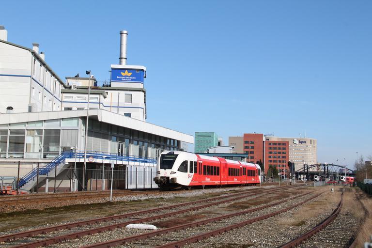 | Keywords: Treinstel Spurt Groningen.JPG  nl Treinstel Spurt Groningen 2014-03-04 14 32 13 own Maurits90 cc-zero 2014 in rail transport in the Netherlands Arriva Spurt Bridges over railway lines in the Netherlands Transport in Groningen city British American Tobacco KPN Images by Maurits90 |