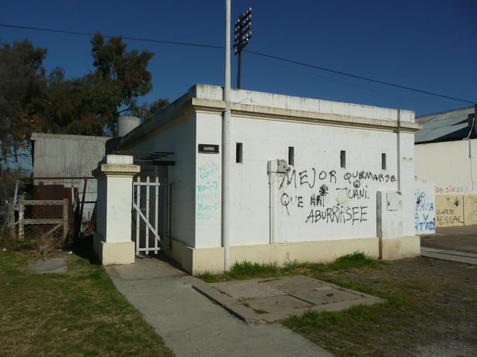 Keywords: Trenque Lauquen - Estación de tren 7 baños.JPG en Trenque Lauquen city Buenos Aires province Argentina 2014-08-19 15 32 41 own RoRo other versions cc-zero Uploaded with UploadWizard Spanish inscriptions in Argentina Trenque Lauquen train station Public bathroom exteriors |