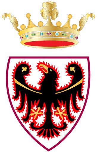 | Keywords: Trentino CoA.svg Trentino de Wappen der Autonomen Provinz Trient - Trentino/Welschtirol fr Blason de la Province Autonome de Trente - Trentin es Escudo de la Provincia Autónoma de Trento - Trentino Provincia Autonoma di Trento - Trentino concesso con D P R del 4 gennaio 1988 su scudo appuntato d'argento all'aquila di Trento con la bordatura diminuita in filetto di porpora Sopra lo scudo la corona speciale della Provincia Autonoma di Trento che è formata dal cerchio d'oro brunito gemmato cimato da quattro fioroni tre visibili sostenuti da punte e alternati da dodici sferette di cui otto poste sul margine del cerchio quattro visibili due e due e quattro sostenute da punte due visibili una e una alternanti le sferette poste sul margine Stemma dâ Pruvincia Autonoma di Trentu - Trentinu File Trentino CoA jpg 1339 King John of Bohemia vectorized by Gothika created with Adobe Illustrator insignia PD-old-100 100px Coat of arms of the Bishopric of Trent Coats of arms of Trentino Eagle of saint Wenceslas SVG coats of arms of provinces of Italy Trento |
