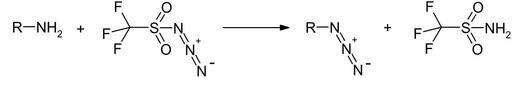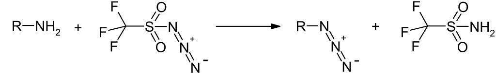 | Keywords: Trifluoromethanesulfonyl azide reaction02.svg en Formation of organic azides from amines and trifluoromethanesulfonylazide de Herstellung von organischen Aziden durch Umsetzung von Aminen mit Trifluormethansulfonylazid own Steffen 962 2015-01-18 PD-chem Trifluoromethanesulfonyl azide Chemical syntheses Cc-zero |