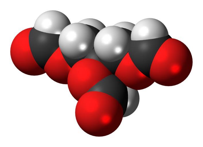 | Keywords: Triformin 3D spacefill.png Space-filling model of the triformin molecule the triglyceride of formic acid Colour code 505050 Carbon C black<br> F0F0F0 Hydrogen H white<br> F51E1E Oxygen O red<br> 2011-07-03 own DS Visualizer Jynto talk Ball-and-stick version cc-zero Images by Jynto Formate esters Triglycerides |