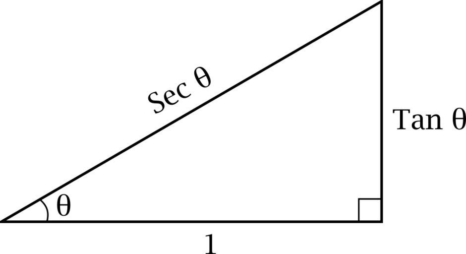 Keywords: Trig-unit-adj.svg en Triangle showing Tan and Sec own JamesCrook 2010-12-29 Trigonometric triangles