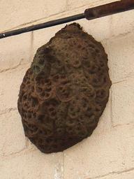 Keywords: Trigona-spinipes-nest-unicamp-01.png en Nest of stingless bees Trigona spinipes on the wall of a building at the State University of Campinas Brazil The nest is a couple of months old; it is built of dirt and other debris The greenish part possibly including cow or horse dung is the most recent addition A couple of bees are visible as bright specks The cinder blocks are about 40 cm wide and 19 cm tall excluding the mortar The wall is painted tan-beige; the white smudges below the nest are places where the paint peeled off showing the older white paint layer Picture taken by J Stolfi with a Sony DSC-V1 camera with some post-processing own Jorge Stolfi 2008 04 17 at 14 11 35 local time File Trigona-spinipes-nest-unicamp-05 png Trigona spinipes |