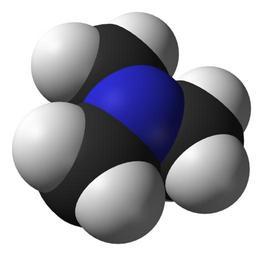 | Keywords: Trimethylamine-3D-vdW.png Space-filling model of the trimethylamine molecule N CH<sub>3</sub> <sub>3</sub> Microwave rotational spectroscopy data from cite journal James E Wollrab and Victor W Laurie 1969 August Structure and Conformation of Trimethylamine J Chem Phys 51 1580-1583 10 1063/1 1672214 Own 2008-05-04 Ben Mills Benjah-bmm27 Images by Ben Mills Trimethylamine |