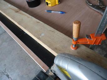 Keywords: Trimming an interior door using a circular saw with a laser guide and wood guide.JPG en An interior door was purchased to replace a broken door not shown but the new door was 1 too tall Accordingly the bottom had to be trimmed The circular saw has a laser guide which makes a red line barely visible on the black tape In addition a 2x4 wood guide was clamped so that the circular saw would make a straight cut The black tape was used to prevent the saw blade from ripping out chunks of the exterior door the tape was removed after sawing In the photo the door is about to be cut 2014-05-20 own Tomwsulcer cc-zero Uploaded with UploadWizard Handyman photos by tom sulcer Circular saws Lasers Doors Woodworking |
