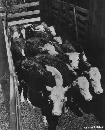 | Keywords: Trinity - exposed cattle.jpg en TRINITY PHOTOGRAPH - Alamogordo NM - Trinity test - Range cattle inadvertently exposed to radioactive dust in first atomic bomb explosion in New Mexico in 1945 The cattle are to be studied along with their offspring for possible effects 50 99470 Federal Government of the United States PD-USGov Nuclear fallout Trinity test Cows |