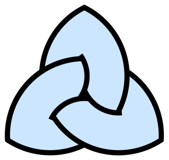 | Keywords: Triquetra-tightly-knotted.svg A tightly-knotted form of the Triquetra For a version with straight lines not partial circular arcs see Image Valknut-Symbol-triquetra svg For curved versions of the triquetra which are not tightly knotted see Image Triquetra-Interlaced-Triangle-Circle svg Image Triquetra-Vesica svg Image Triquetra-Vesica-solid png Image Triquetra-Double svg and Image Triquetra-circle-interlaced svg Vector version of File Triquetra-tightly-knotted png converted from the following PostScript code <pre> /K 8 9 1 setrgbcolor 15 4 setlinewidth def/l stroke def /S 3 sqrt mul def /C2 25 3 sqrt div def /C3 25 7 cos div def /C4 C3 7 sin mul def /v1 50 C2 C4 sub C3 def /v2 62 5 C4 S 2 div add C2 12 5 S add C4 2 div add C3 def /v3 37 5 C4 S 2 div sub C2 12 5 S add C4 2 div add C3 def -90 160 translate 8 dup scale 20 setlinewidth v1 173 7 arcn l v2 -67 -233 arcn l v3 53 -113 arcn l K v1 173 7 arcn v2 -67 -233 arcn v3 53 -113 arcn closepath l 0 setgray 20 setlinewidth v1 155 90 arcn l v2 -85 -150 arcn l v3 35 -30 arcn l K v1 156 89 arcn l v2 -84 -151 arcn l v3 36 -31 arcn l 0 setgray 2 3 setlinewidth v1 8 85 sub 146 84 arcn l v2 8 85 sub -94 -156 arcn l v3 8 85 sub 26 -36 arcn l v1 8 85 add 184 481 172 arcn l v1 8 85 add 8 -4 481 arcn l v2 8 85 add -55 519 -68 arcn l v2 8 85 add -232 -244 481 arcn l v3 8 85 add 64 481 52 arcn l v3 8 85 add -112 -124 481 arcn l showpage EOF</pre> 2007 as SVG PNG and PostScript by AnonMoos; first SVG conversion by Ogre; second SVG conversion by AnonMoos Interlaced triquetra Trefoil knot diagrams with 3-fold rotational symmetry Knots and links on transparent background Outline knots and links Images with PostScript source code |