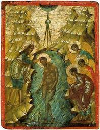 Keywords: Troitskiye tabletki - Baptism.jpg К ещение Двусто онняя икона-таблетка Вто ая четве ть XV в Холст левкас темпе а 23 × 18 см Се гиево-Посадский госуда ственный исто ико-художественный музей-заповедник Россия Из комплекта так называемых «Т оицких таблеток» Обо от «С етение» http //www icon-art info/group php lng ru grp_id 64 Вто ая четве ть XV в anonymous Troitskiye tabletki Files uploaded by Shakko from various sources PD-old Icons of the baptism of Jesus Christ |