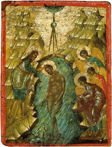 Keywords: Troitskiye tabletki - Baptism.jpg К ещение Двусто онняя икона-таблетка Вто ая четве ть XV в Холст левкас темпе а 23 × 18 см Се гиево-Посадский госуда ственный исто ико-художественный музей-заповедник Россия Из комплекта так называемых «Т оицких таблеток» Обо от «С етение» http //www icon-art info/group php lng ru grp_id 64 Вто ая четве ть XV в anonymous Troitskiye tabletki Files uploaded by Shakko from various sources PD-old Icons of the baptism of Jesus Christ